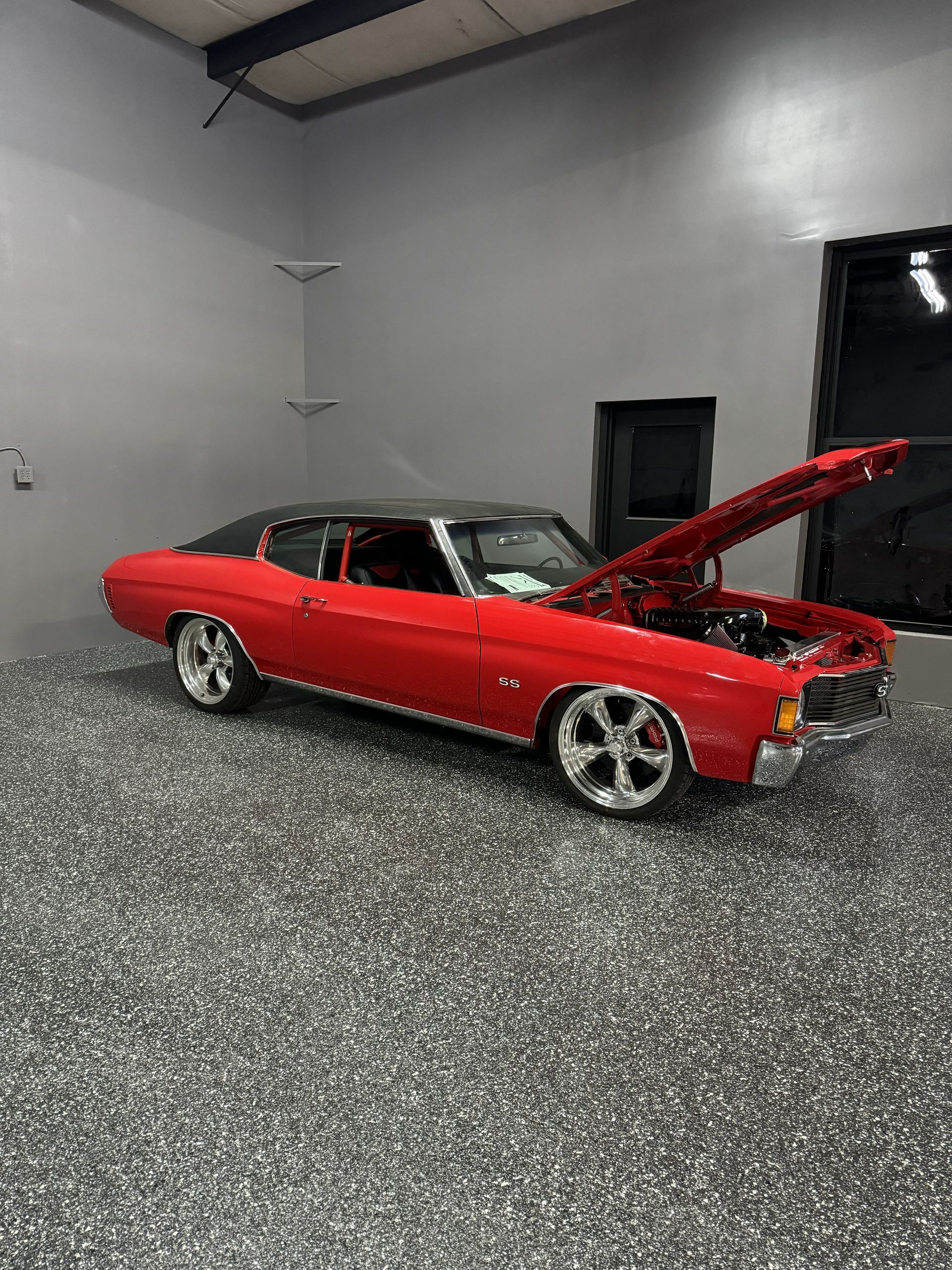 Epoxy flake flooring installation for garages, basements, and interior spaces throughout Raleigh, North Carolina and surrounding areas.