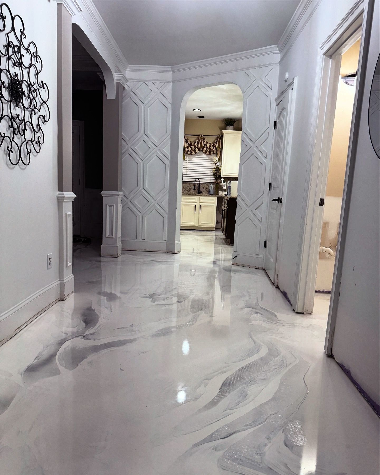 When you walk across a metallic epoxy floor in Raleigh, Wake Forest, Fayetteville or a surrounding area, the surface catches light differently depending on where you stand. The finish flows in layers, creating depth and movement that shifts as you move through the room. This type of flooring is chosen for entryways, living areas, showrooms, and any space where the floor itself becomes part of the design rather than just a surface to walk on.